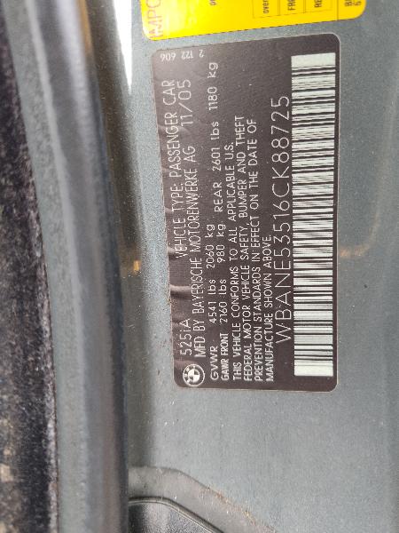 Vin:WBANE53516CK88725